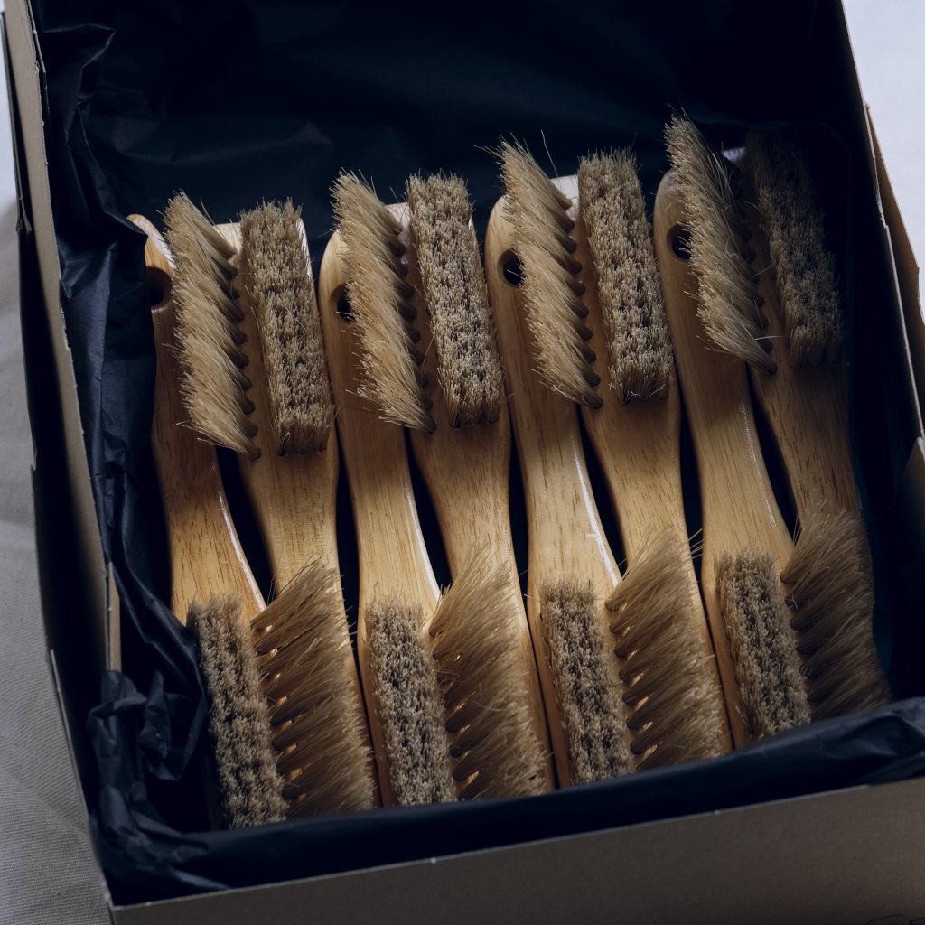 Poznámka: Většina štětin, které R Russell používá, jsou získávány jako vedlejší produkt masného průmyslu a jinak by zůstaly nevyužity. Výrobce se tak snaží využít zdroje v maximální míře a zároveň vytvářet kartáče, které jsou odolné a dlouho vydrží.