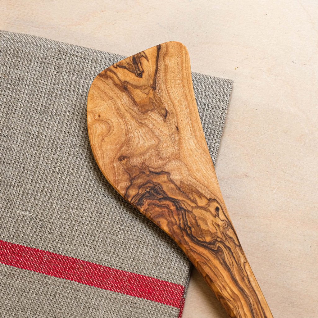 Obracečka na wok je vyrobená z jemného olivového dřeva, takže chrání vaši pánev a nezanechává po sobě žádné škrábance. Olivové dřevo má nejen krásnou kresbu, ale díky pomalému růstu je také mimořádně tvrdé. Vysoký obsah přírodních olejů zajišťuje, že je vodoodpudivé, neklouže a zůstává pružné. Tato univerzální špachtle při správné péči vydrží opravdu dlouho. Ideální k míchání i obracení, skvělá pro přípravu asijských jídel.