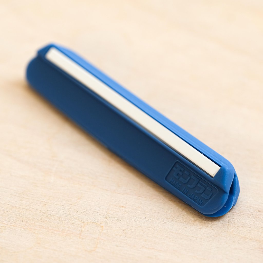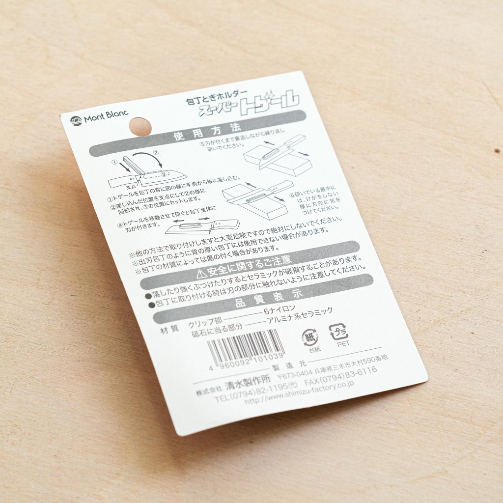 Udržování ostrého kuchařského nože je jednou z nejdůležitějších úloh každého kuchaře. Broušení nožů na brusných kamenech je dovednost, která povyšuje péči o kuchyňské nástroje na vyšší úroveň. Tato praktická pomůcka se hodí pro všechny, kteří se chtějí tuto dovednost naučit. Je určena pro broušení japonských nožů, které se ostří pod úhlem 15 stupňů. Vodítko z protiskluzového nylonu se jednoduše připevní na zadní stranu nože a během broušení udržuje čepel ve správném úhlu. Část, která přiléhá k brusnému kameni, je vyrobena z keramiky, což zajišťuje plynulý pohyb a zabraňuje rychlému opotřebení vodítka.
