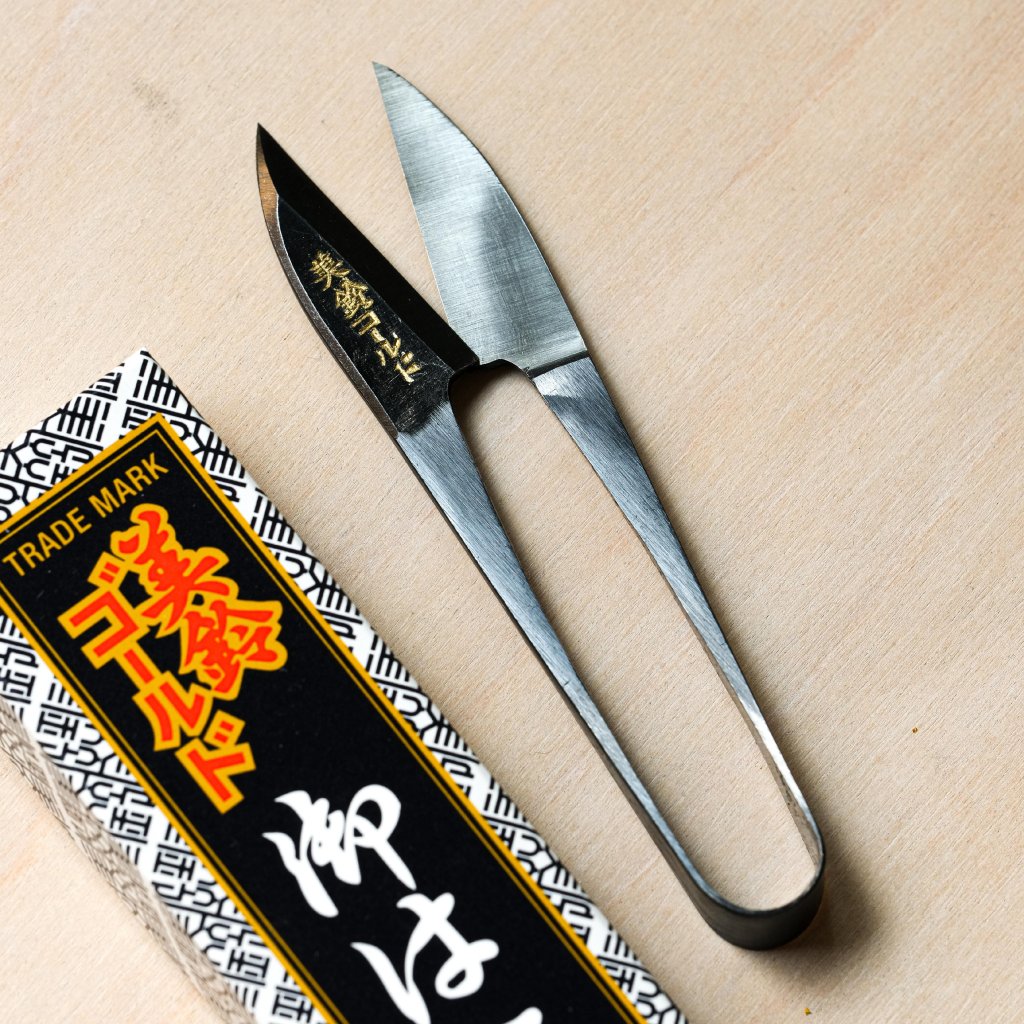 Nůžky jsou vyrobeny z kompozitního materiálu z nejlepší nožířské uhlíkové oceli Shirogami White Steel #1 a měkkého železa. Díky pokrytí tvrdé oceli měkkým železem má čepel vyšší houževnatost, je vysoce odolná a velmi dobře se brousí. Jedná se o tradiční techniku, která se používala i u japonských mečů. Povrch je opatřen nerezavějící úpravou Ibushi a časem se na něm vytváří příjemná patina.