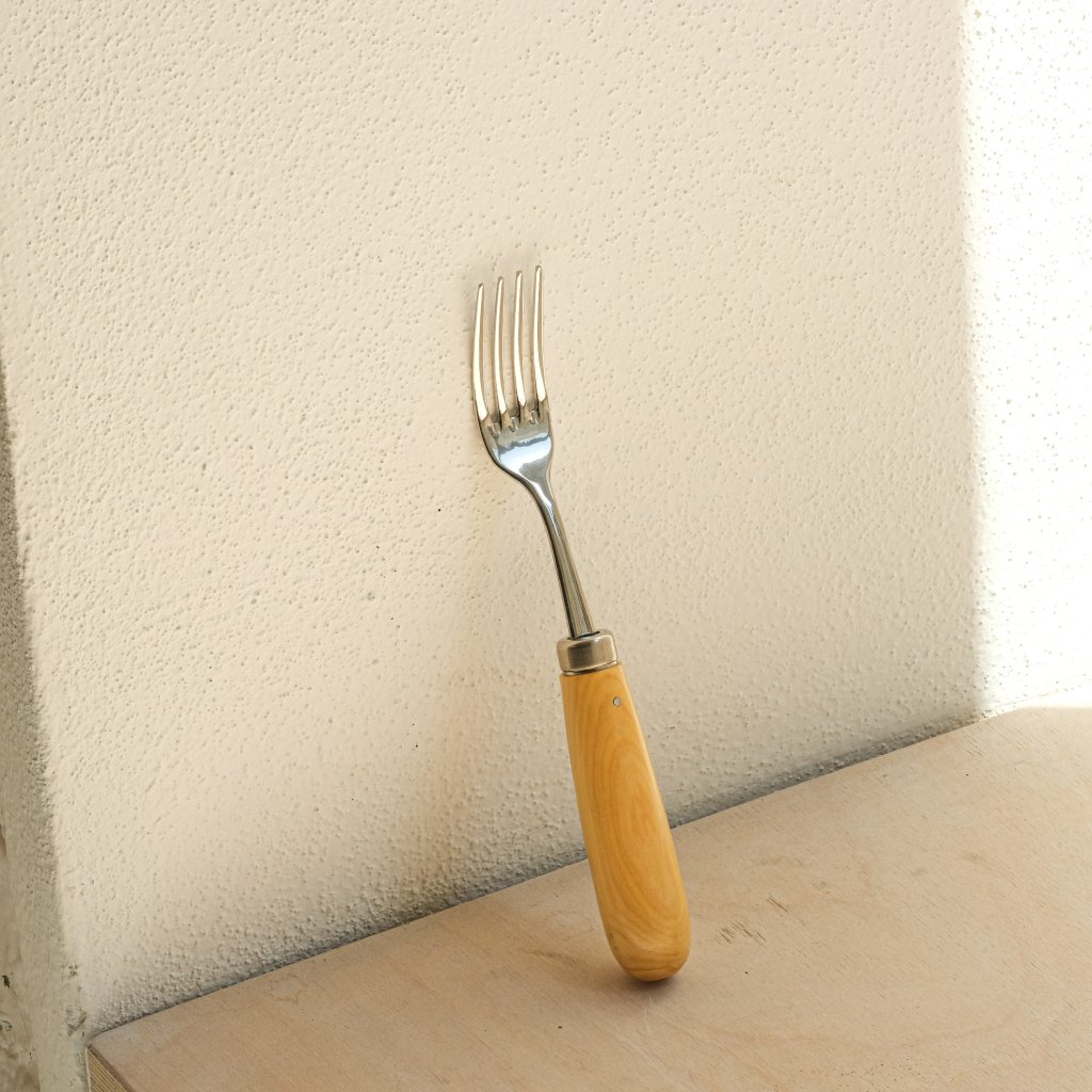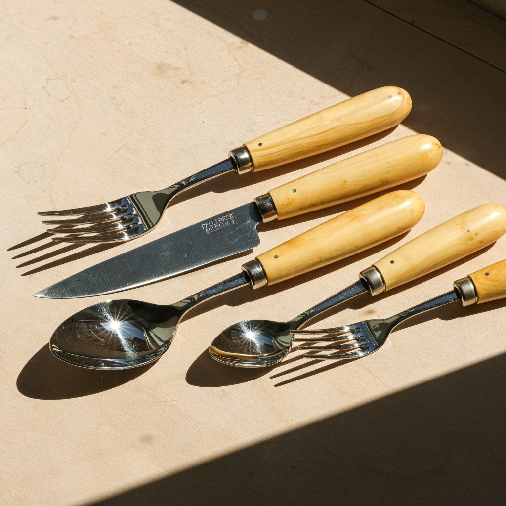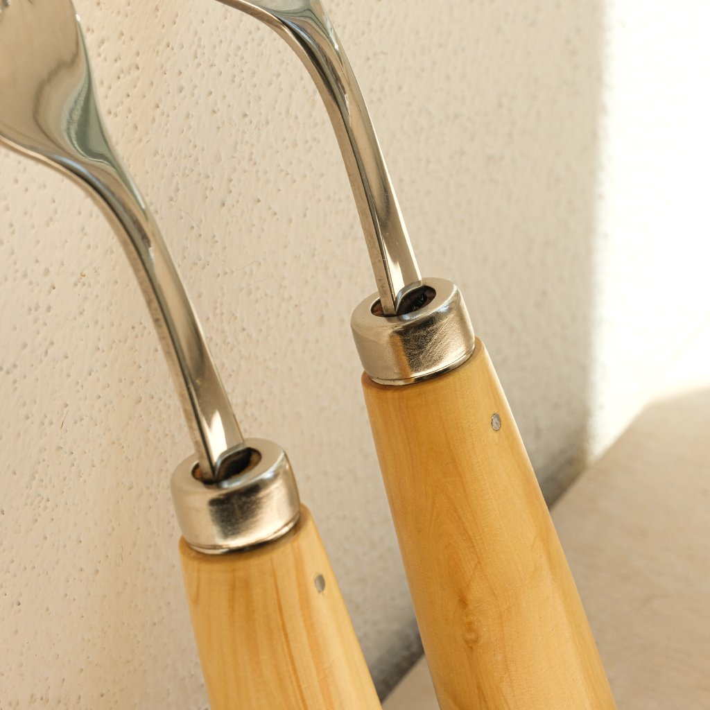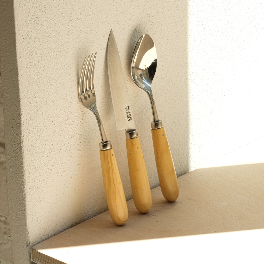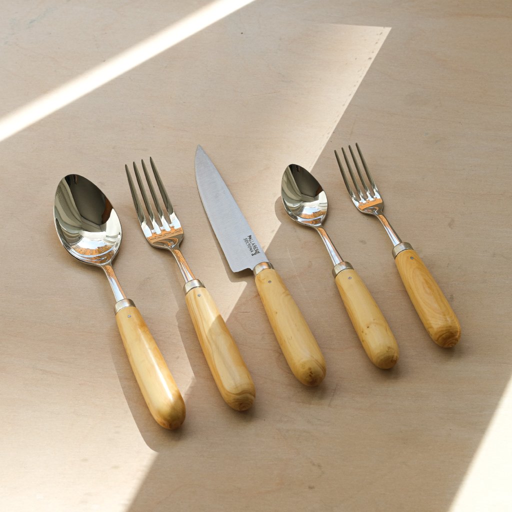 Příbory od Pallarès jsou lehké, pohodlné a skvěle vyvážené, ideální pro každodenní použití. Ručně leštěná rukojeť ze dřeva zimostrázu má tradiční kulatý tvar, typický pro Pallarès, a poskytuje příjemný úchop i krásný rustikální vzhled. Lžíce se skvěle hodí na polévky, krémy a dezerty, ale i k ochutnávání jídel při vaření - dřevěná rukojeť se totiž tolik nezahřívá. Lžíce i vidličky jsou dostupné ve dvou velikostech, větší pro hlavní chody a menší pro dezerty či ovocné saláty. Nůž má čepel z nerezové oceli o délce 12 cm a skvěle se hodí jak ke stolu, tak do kuchyně, jako všestranný pomocník při přípravě jídla. Vybírejte jednotlivě nebo příbory kombinujte a vytvořte si dokonalý set, který si v kuchyni i u stolu rychle najde své stálé místo.