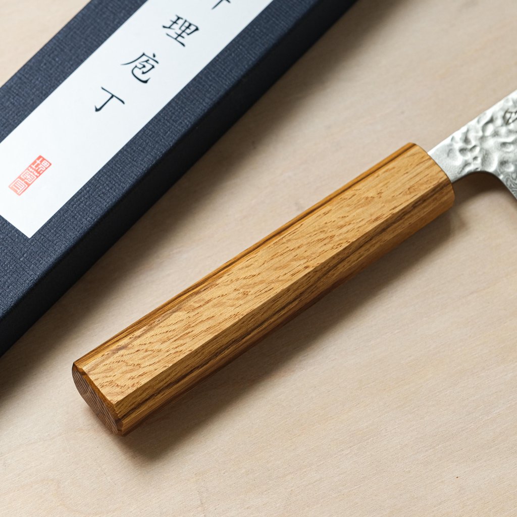 Japonský kuchyňský nůž ručně kovaný ve městě Sakai. Nepostradatelný model Santoku s precizní Kiritsuke špičkou.