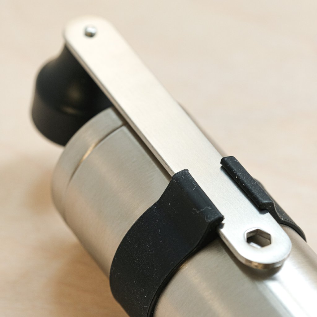 Víko, tělo a nádoba jsou vyrobeny z nerezové oceli 18-8 v kombinaci s polypropylenem, polyacetalem, nerezovou ocelí, železem a PTEF. Rukojeť je z nerezové oceli a polypropylenu, čepel z porcelánu a protiskluzová gumička ze silikonové pryže.