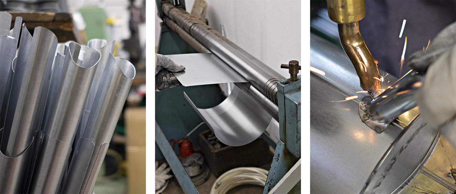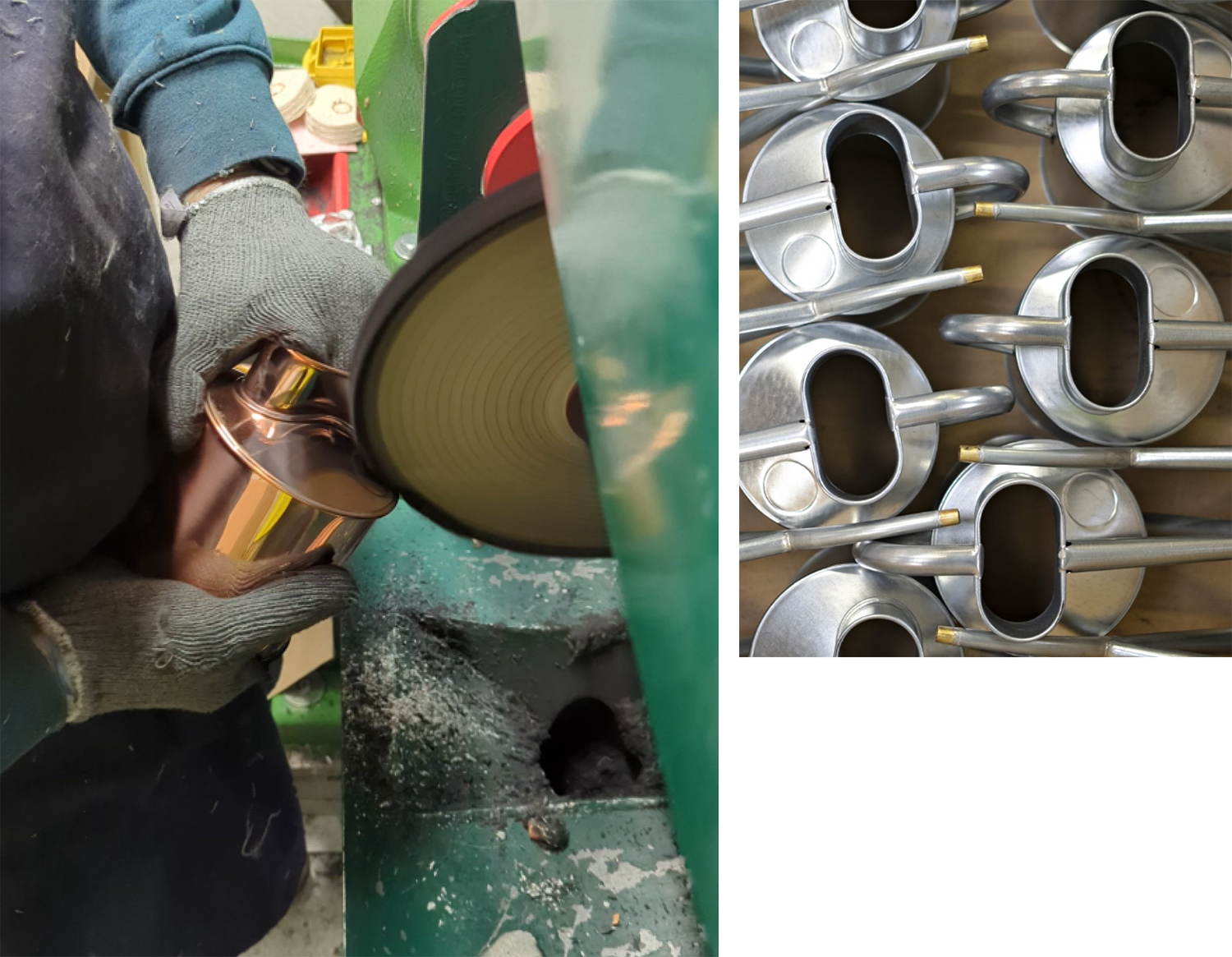 Tělo se stáčí z jednoho listu plechu. Dno i kropítko se pečlivě lisují. Výlevka se pod rukama zkušených mistrů ohýbá do plynulého oblouku. Spoje se svařují s důrazem na přesnost, aby zůstaly pevné a spolehlivé.