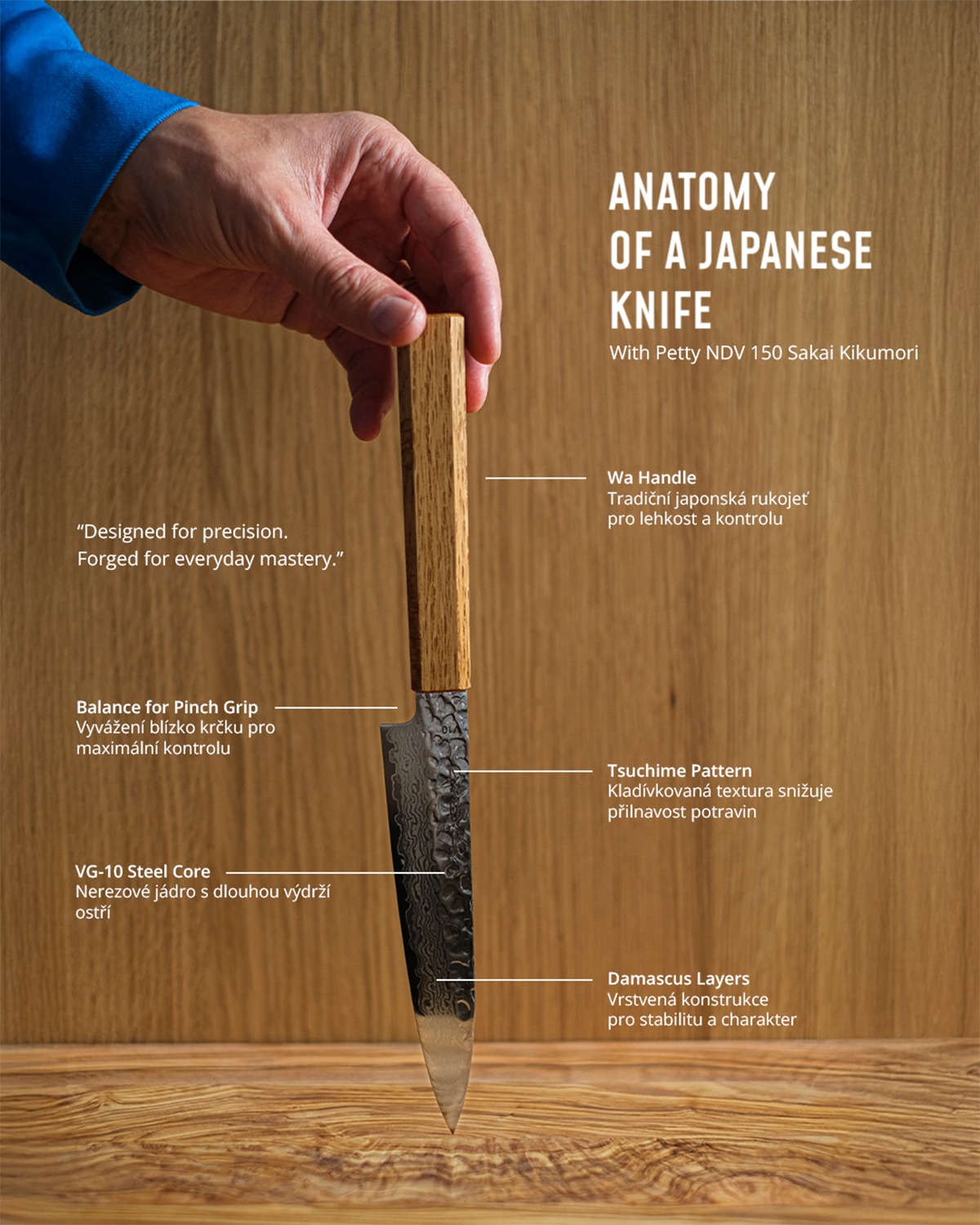 Uvědomíte si to ve chvíli, kdy vezmete japonský nůž do ruky a začnete s ním krájet rybu nebo maso. Nůž vede řez sám a vy mu jen jemně „uhýbáte z cesty“. Surovina se nemačká, řez je čistý a přesný a najednou máte větší kontrolu nad tím, co děláte. Překvapí vás také, jak je nůž lehký a jak přirozeně se ovládá. Časem pochopíte, že nejde jen o ostrost, ale o celkový pocit z používání – a právě ten dělá z japonských nožů nástroj, ke kterému se člověk v kuchyni rád vrací.