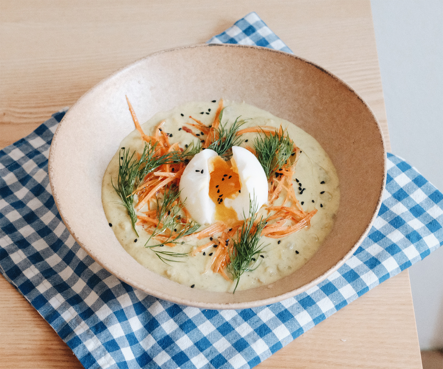 - Vajíčko. V akejkoľvek forme! Volské oko, vajíčko 63° , stratené vajce. Alebo marinované vajce — teda olúpané vajíčko namäkko alebo natvrdo, ktoré cez noc marínujeme v zmesi sójovka-zázvor-hnedý cukor-cesnak.
