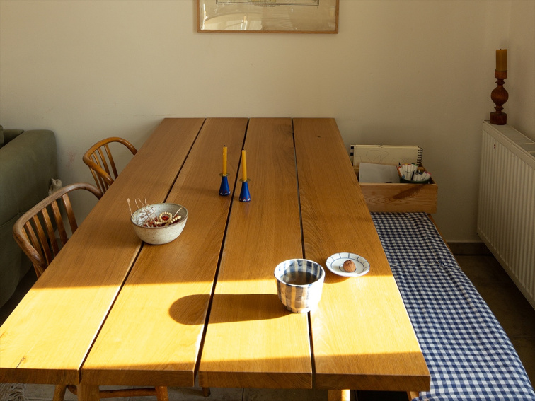 Kým som šila iba sama na seba, šijací stroj a všetko naokolo som si rozkladala na stôl v kuchyni. Kupovali sme ho schválne väčší, nech sa na ňom dá pohodlne pracovať..