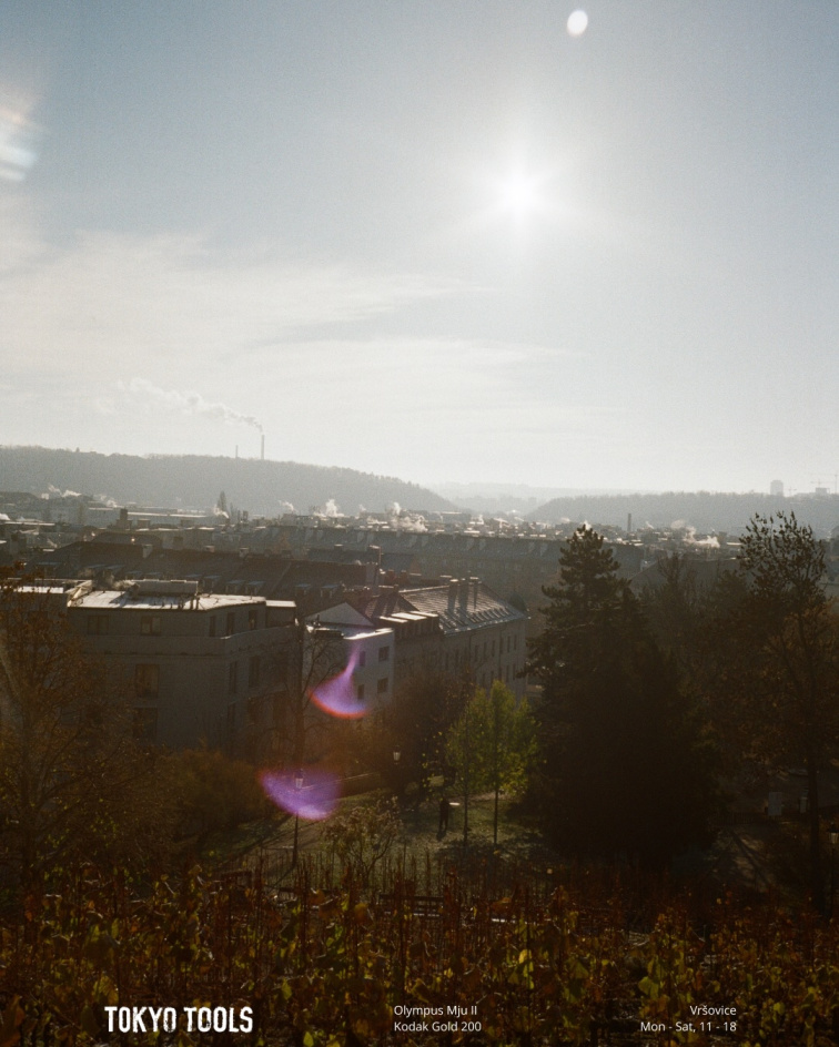 Výhled na Vršovice – listopad 2025 Olympus Mju II · Kodak Gold 200