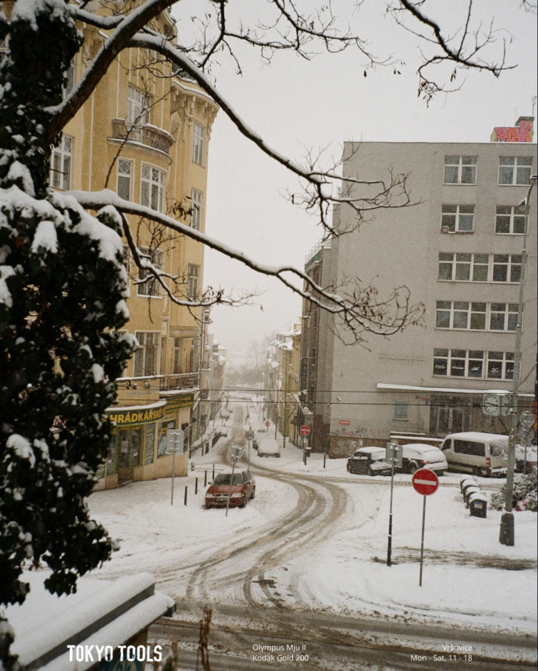 Nádraží – Vršovice – únor 2026 Olympus Mju II · Kodak Gold 200
