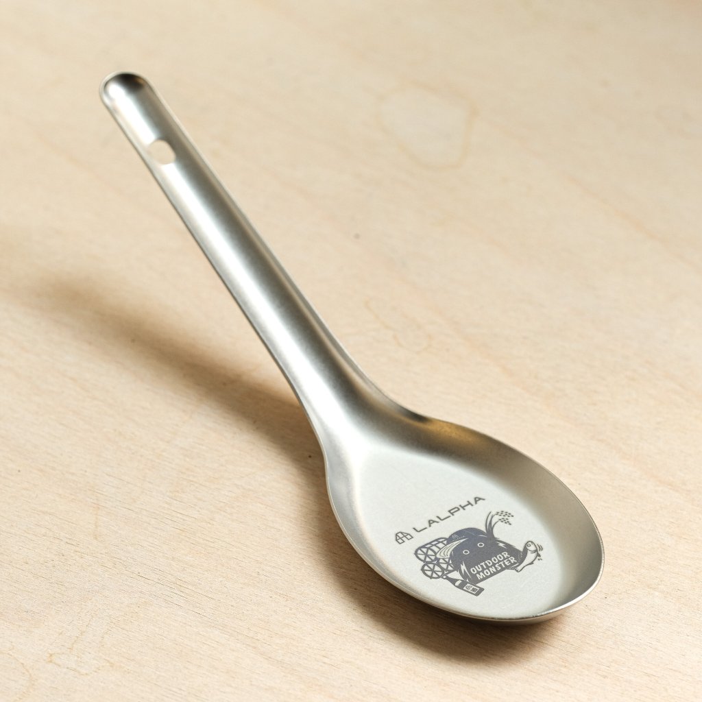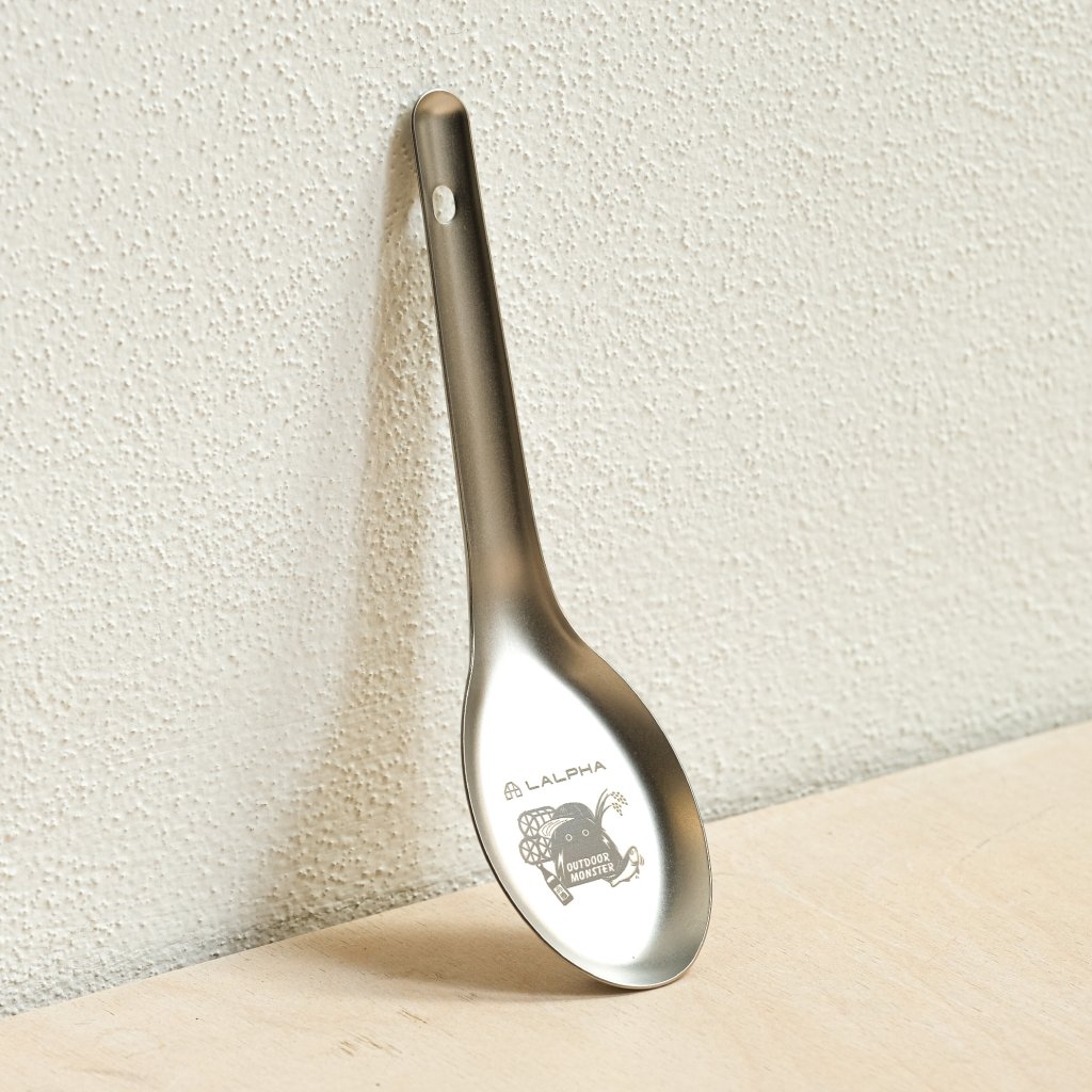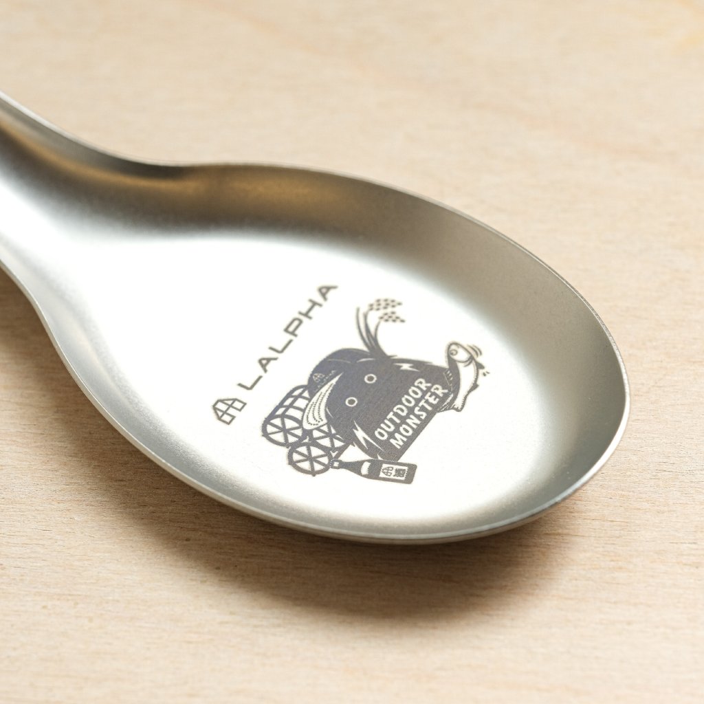 Tato mimořádně lehká titanová lžíce je praktickým a zábavným doplňkem pro kempování. Na přední straně je vygravírované takzvané venkovní monstrum, které podle značky Lalpha neustále vymýšlí nové způsoby, jak si užít pobyt venku. Tvar lžíce čerpá inspiraci z nádobí používaného v taiwanských restauracích a pouličních stáncích. Díky mírně mělkému designu se s ní snadno nabírá polévka i rýže a skvěle se hodí také k nabírání smažené rýže, salátů a mnoha dalších pokrmů. Je vyrobena z titanu, váží pouhých 18 g. Na rukojeti má malý otvor, který slouží k zavěšení.