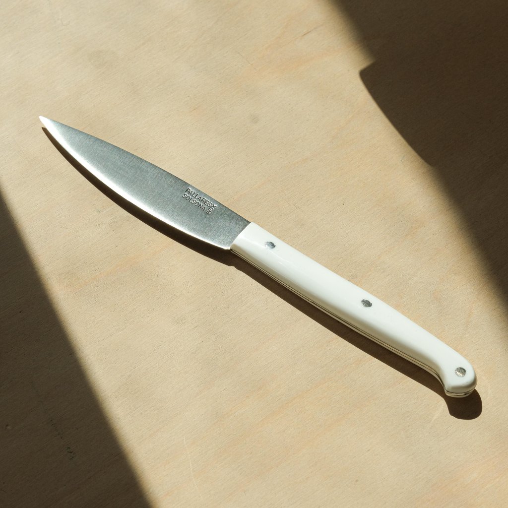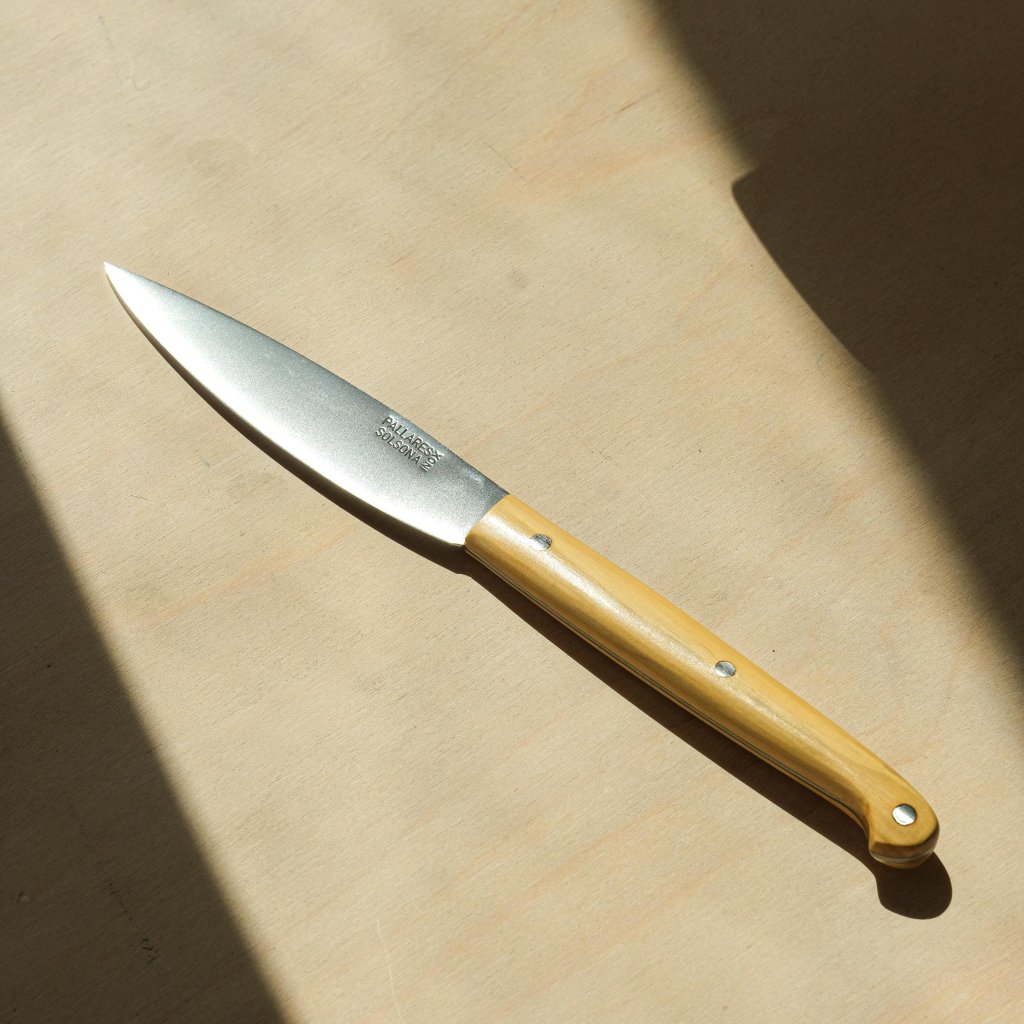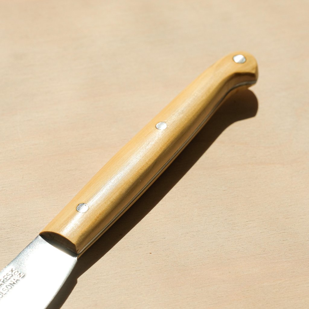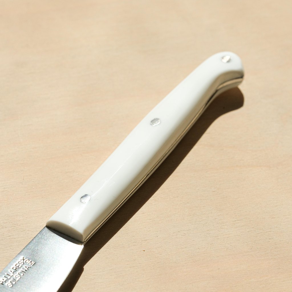 Univerzální jídelní nůž od Pallarés Solsona z nerezové oceli. Nůž má elegantní podlouhlý tvar, čepel vychází z katalánské tradice. Stejně jako u všech nožů od Pallarés Solsona je čepel kovaná a broušená ručně, s ohledem na její pevnost a odolnost. Rukojeť je vyrobena z vlákna Micarta. Po detailním broušení a vytvrzování je ručně leštěná, čímž je dosaženo jejího mramorovaného a ergonomického povrchu.