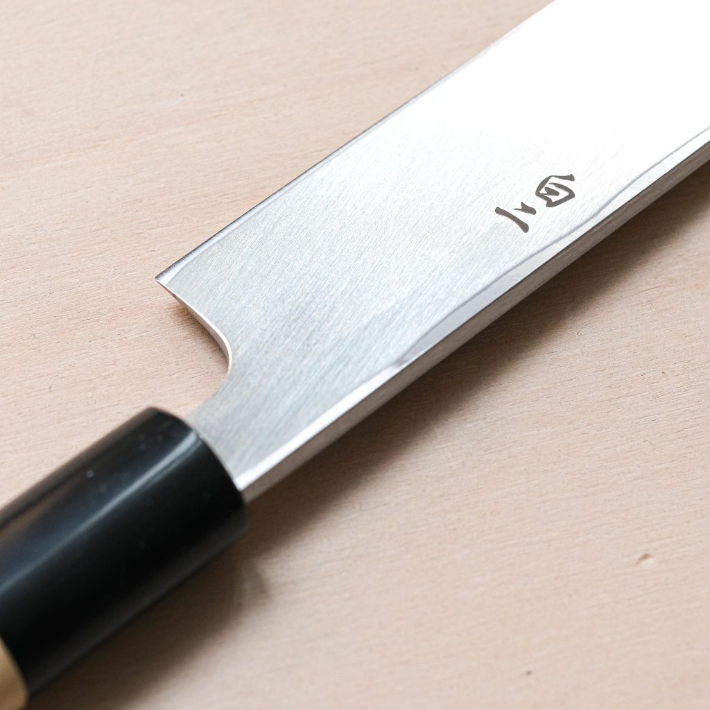 Čepel je z uhlíkové oceli Shirogami White #2, s dvouvrstvou konstrukcí Ni-Mai. Shirogami White Steel je uhlíková ocel s pouze velmi malým množstvím nečistot. Kováním lze dosáhnout výjimečně ostré čepele, která se také dobře brousí. Čepel má leštěnou povrchovou úpravu Migaki.