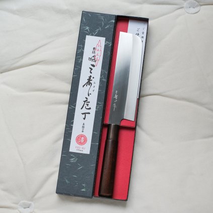 Nacházející se ve městě Miki v Japonsku, Misuzu Hamono je známá jako první kovárna, která v roce 1946 vytvořila čepel z uhlíkové oceli nereagující na rez s vnějšími vrstvami z nerezové oceli (technika Sanmai). Zakladatelem byl pan Suzuki Shinji. Díky speciální konstrukci čepele lze dosáhnout extrémně ostrého ostří a vnější vrstva z nerezové oceli stále chrání ocel proti korozi a poškození. Pan Miyawaki, třetí generace v rodině Misuzu Hamono, prošel školením v proslulém nožířském městě Sakai, a v roce 2006 se stal hlavním nožířem v Misuzu Hamono.